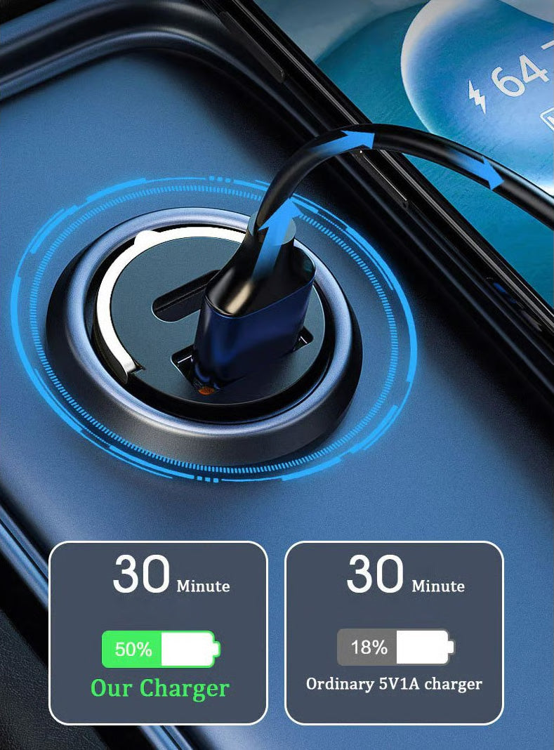 - [100W super fast charging speed] - The fast car charger provides PD 100W (maximum) output, which can quickly charge 11 from 0% to 50% in 30 minutes.
